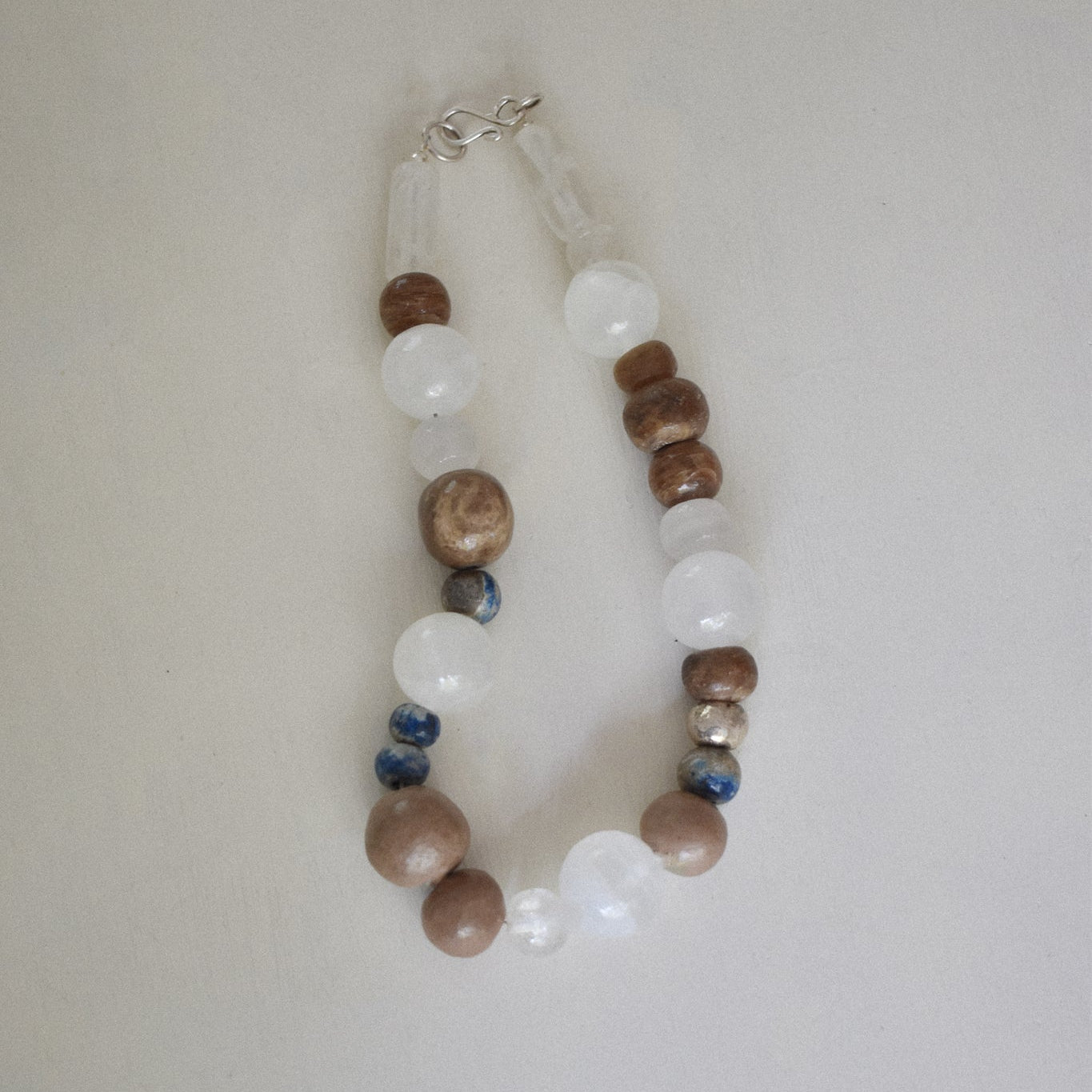 Cada cuenta se moldea, pule y termina a mano, una por una, siguiendo un proceso manual detallado. Por la variación natural del material y su trabajo individual, cada collar es una pieza única de nuestra colección.