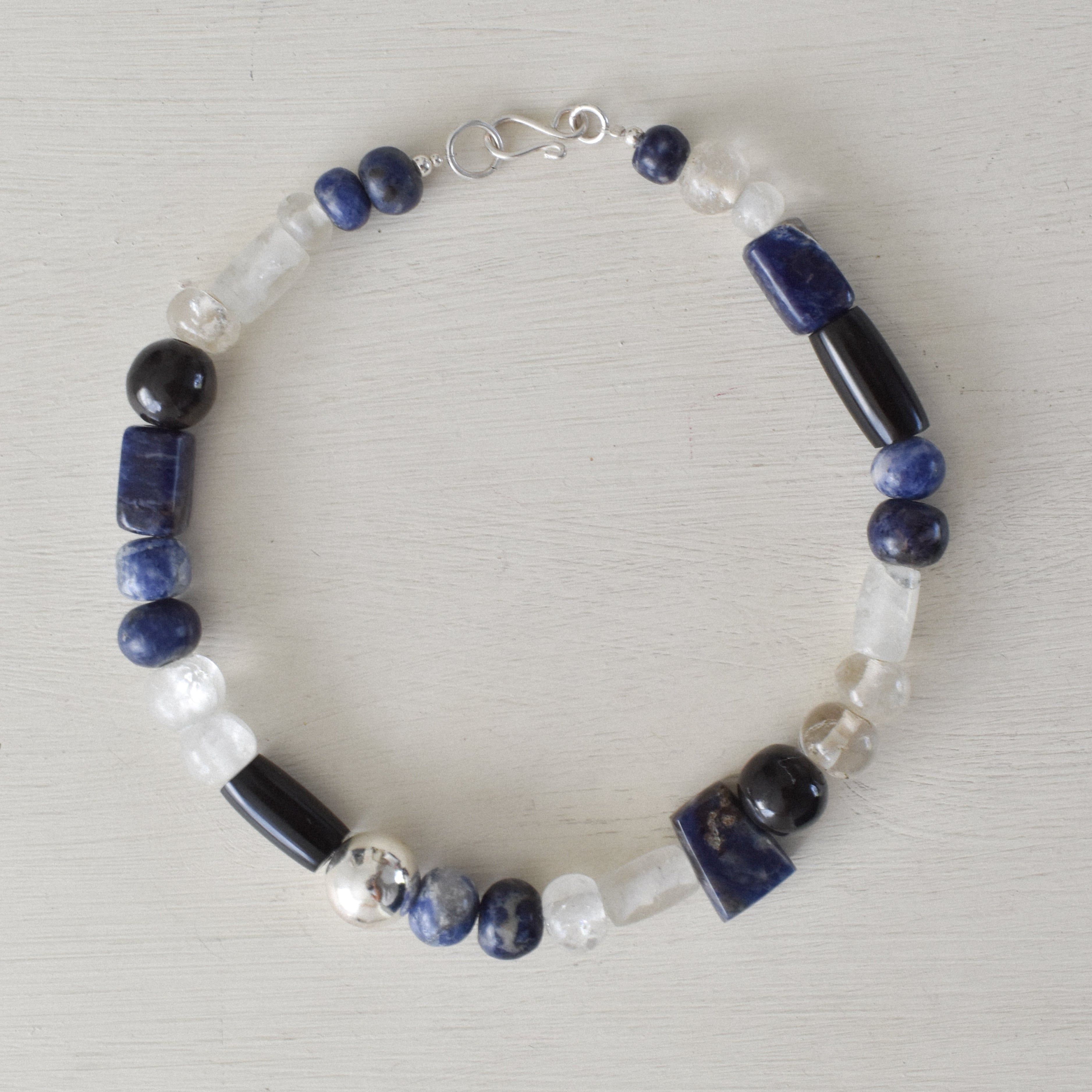 Piedra sodalita, cristal de cuarzo, ónix, esfera y broche de plata 925 -