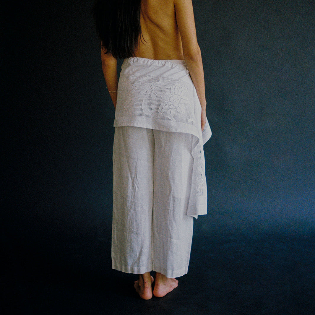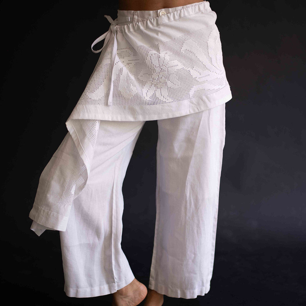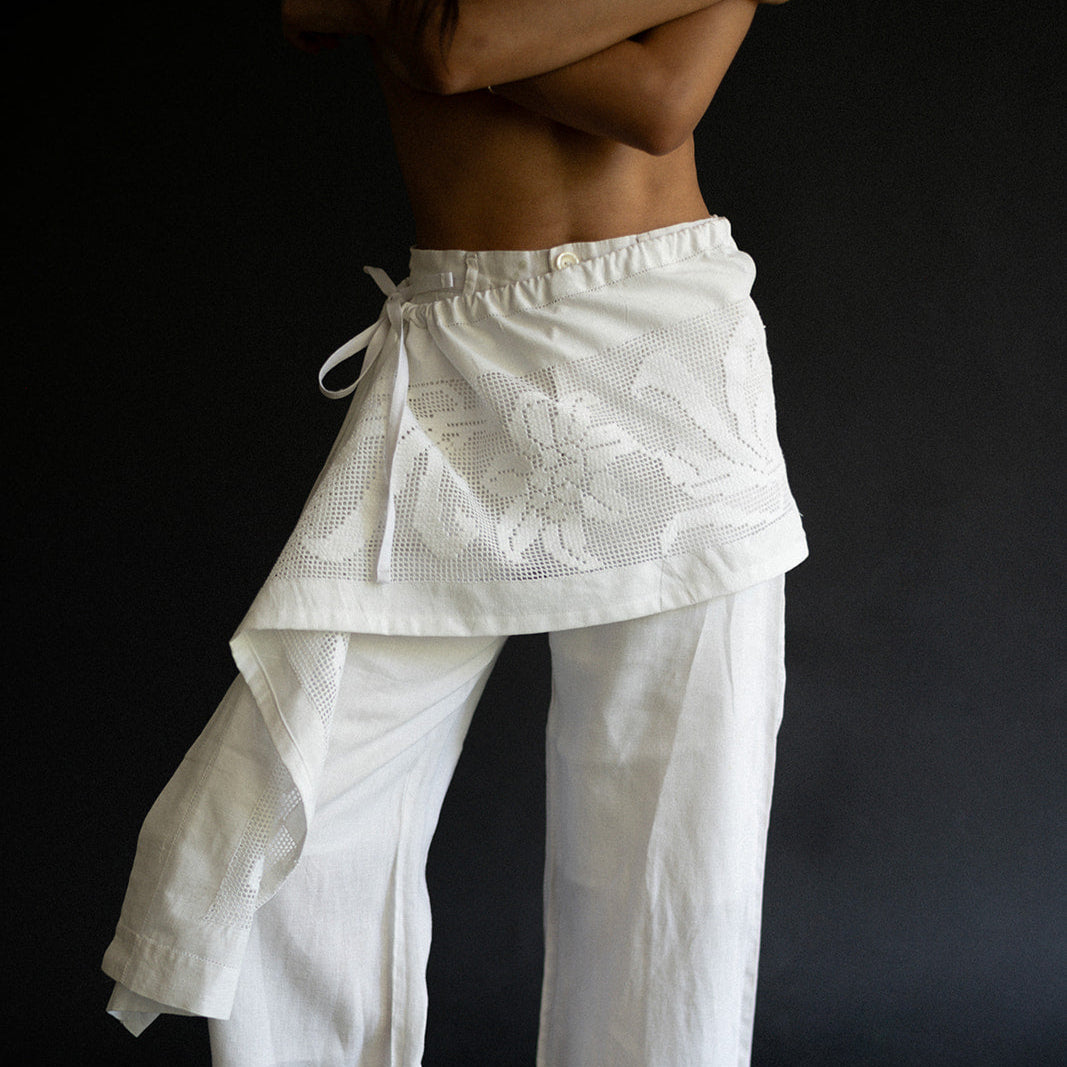 Separating Spanish heritage from the pre-Hispanic is impossible: the Conquest forged a fusion that defines contemporary Mexico. This piece seeks to capture that union through colonial techniques, such as openwork embroidery, applied with care.