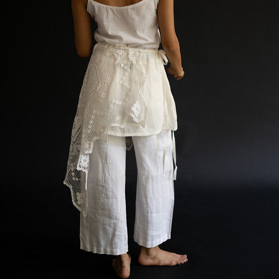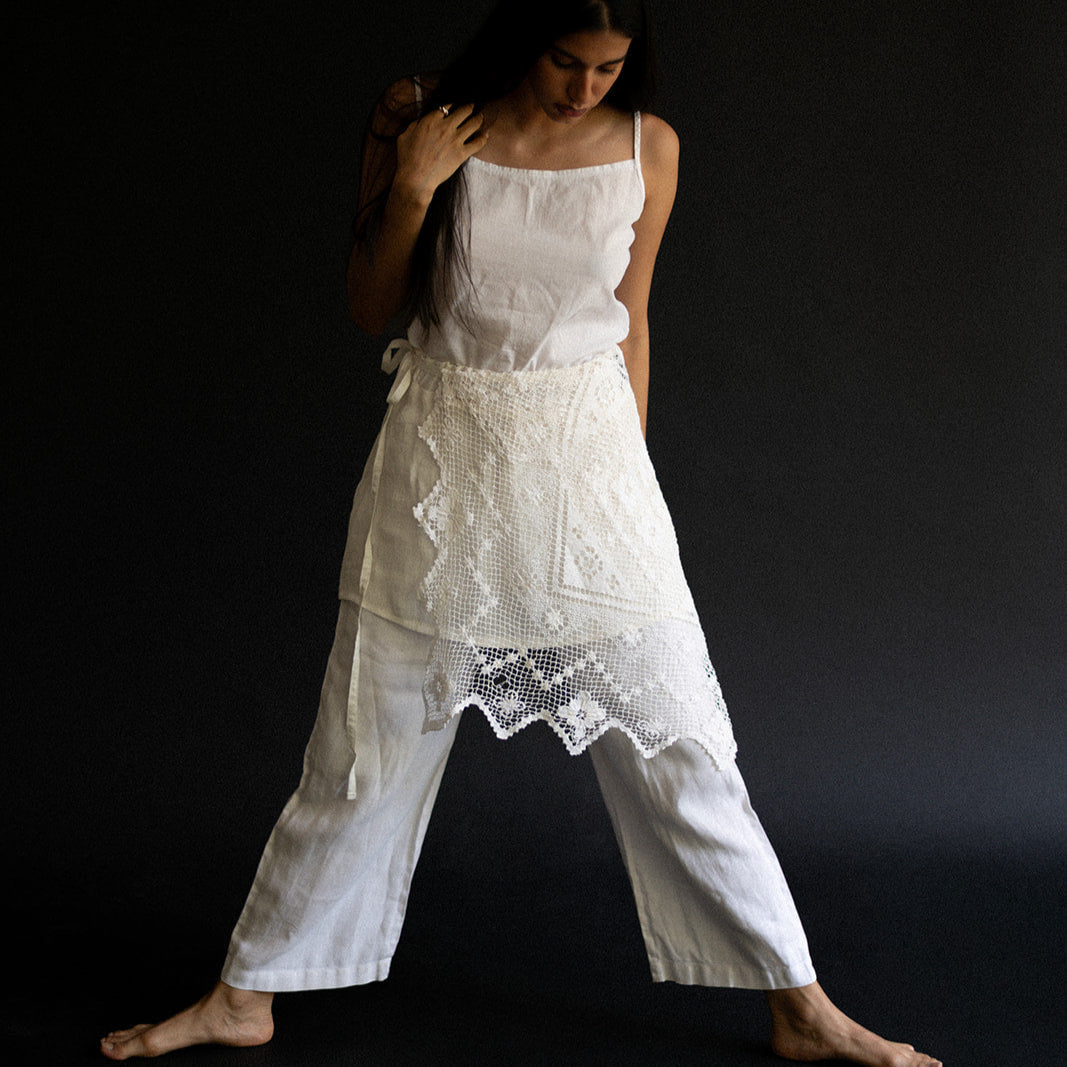 Separating Spanish heritage from the pre-Hispanic is impossible: the Conquest forged a fusion that defines contemporary Mexico. This piece seeks to capture that union through colonial techniques, such as openwork embroidery, applied with care.