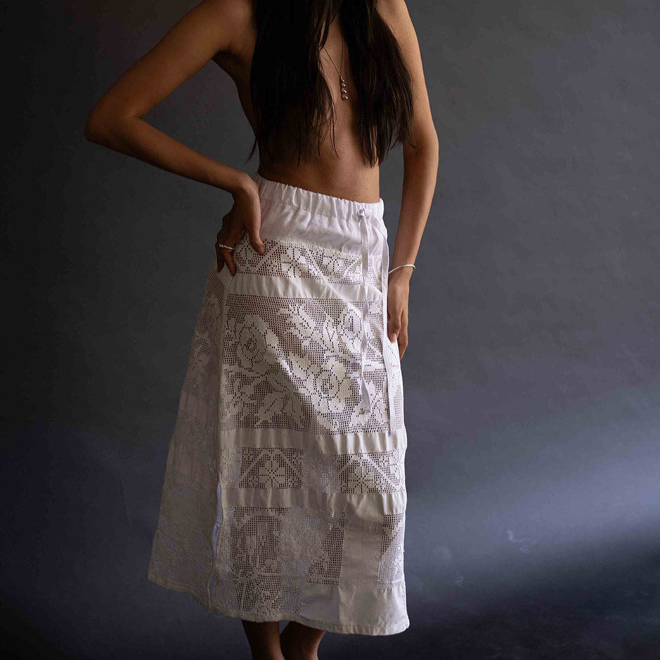 Falda one of a kind talla XS - S, hecha en algodón con bordados.