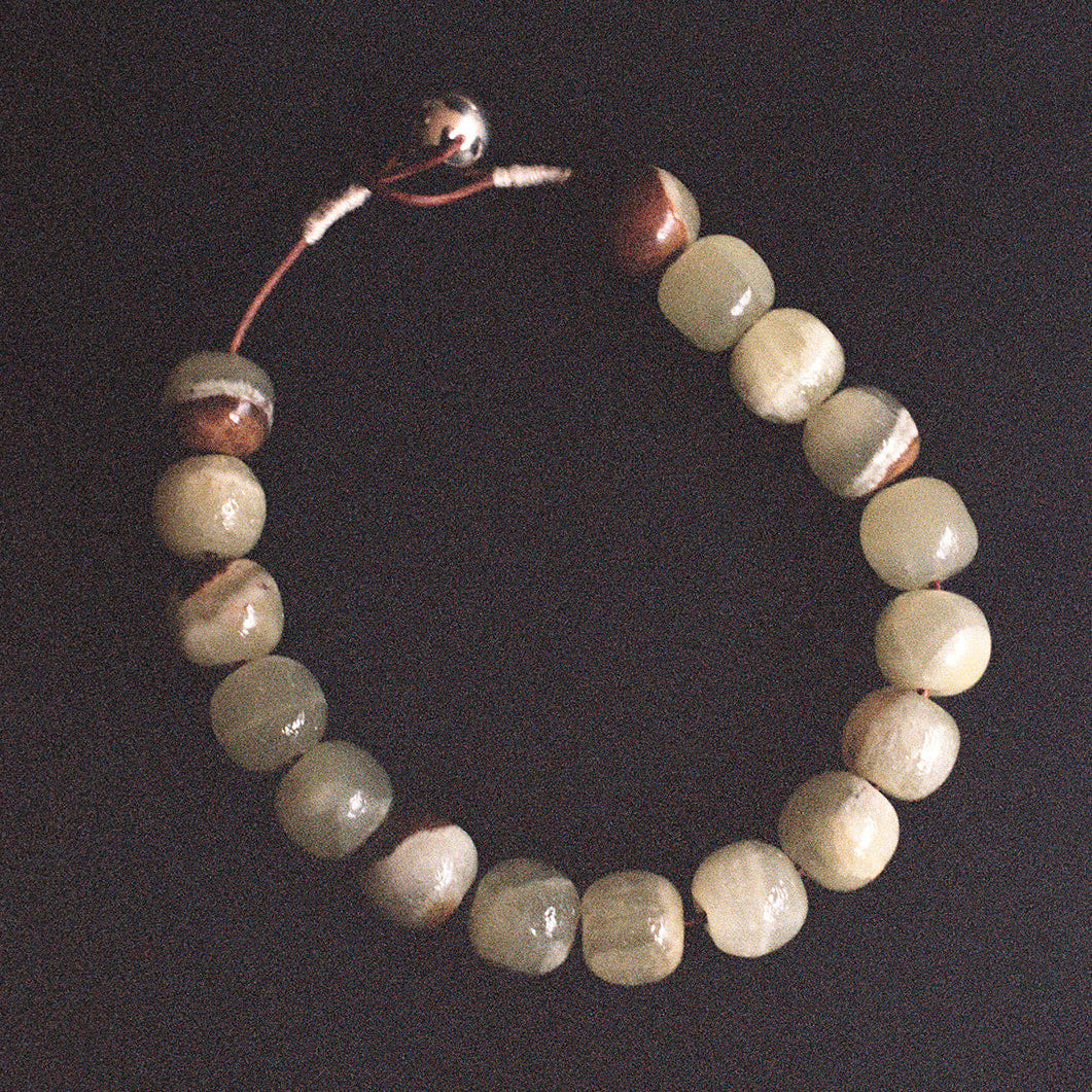 The production process begins with the extraction of stones from regional deposits. Each stone is individually split and polished by hand until reaching the final bead shape.