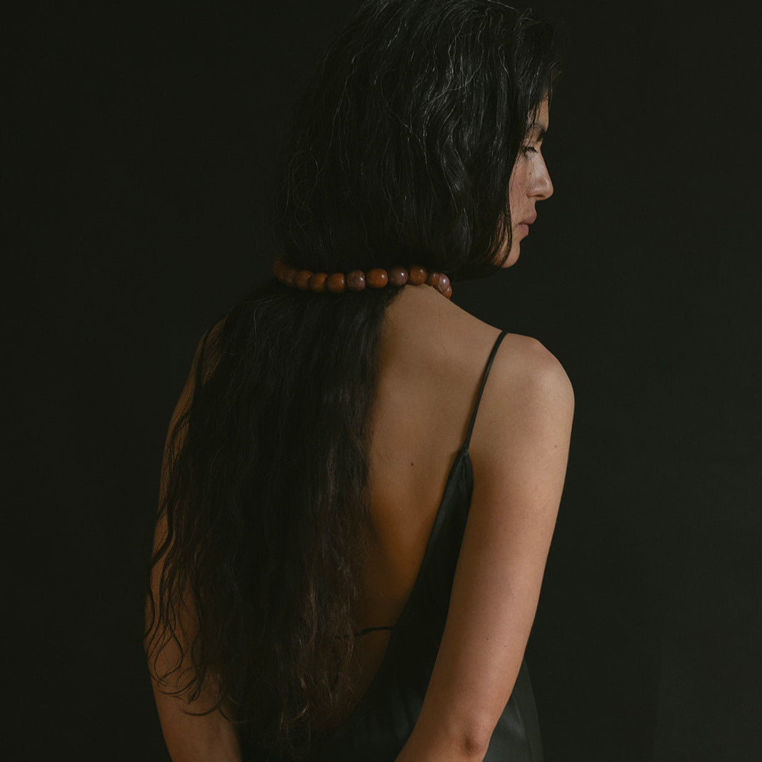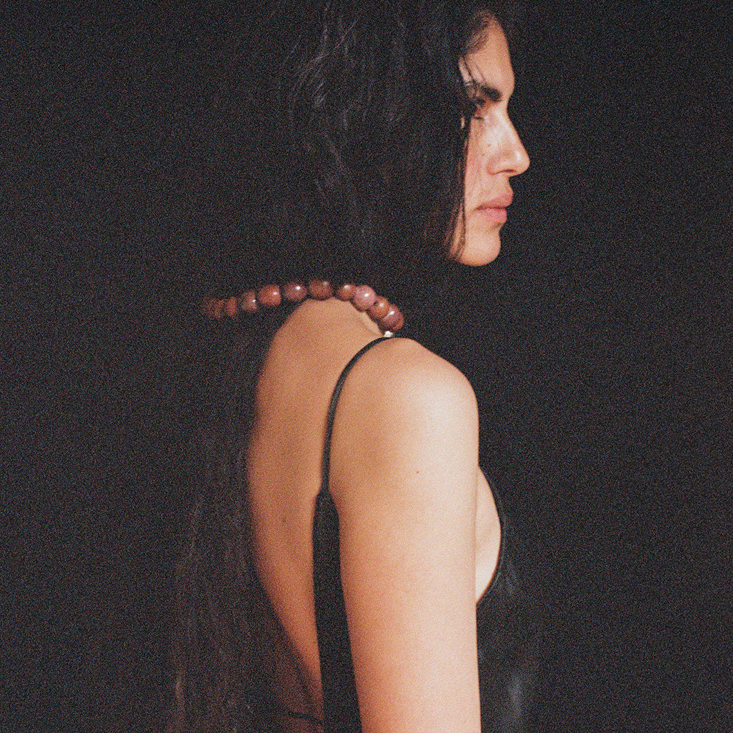 Collar de cuentas trabajadas cuidadosamente a mano en taller familiar.
